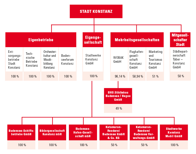 Hier geht es zum aktuellen Beteiligungsbericht der Stadt Konstanz und der Spitalstiftung Konstanz. Er bietet ein umfassendes Gesamtbild über eine Vielfalt von Aufgaben, die aus der städtischen Kernverwaltung ausgegliedert wurden und in einem Eigenbetrieb oder in einer Rechtsform des privaten Rechts erfüllt werden.